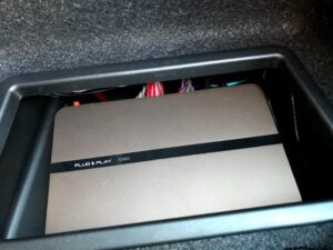 フロント両シート下の20cmユニットはBMW専用ユニット「ISUB BMW 2」に換装しました。