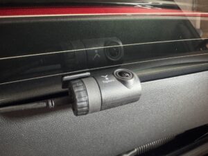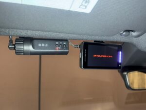 オーナー様とのお打ち合わせのうえで探知機をウインドウ上方でも助手席側に吊り下げました。